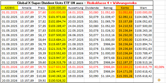 Achtung: Risikoklasse 4 bedeutet höherer Ertrag aber auch höhere Schwankungen, dazu kommt das Währungsrisiko, da er in U$-gelistet ist.
